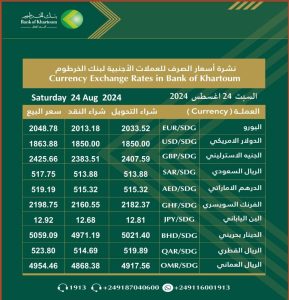 **أسعار العملات الأجنبية في البنوك السودانية**