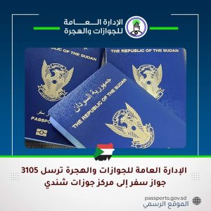 الإدارة العامة للجوازات والهجرة ترسل 3105 جواز سفر إلى مركز جوازات شندي
